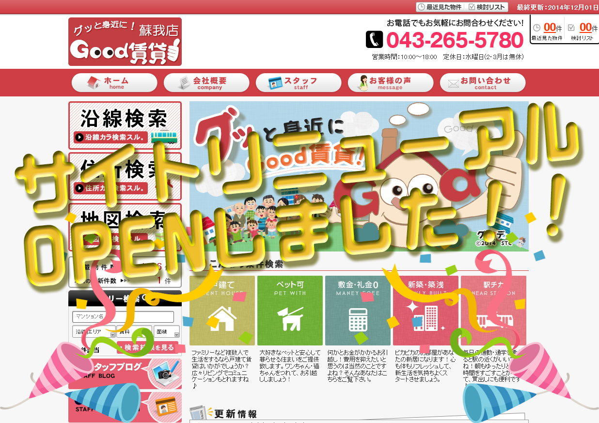 Good賃貸 蘇我店 ウェブサイトがリニューアルオープンいたしました!
